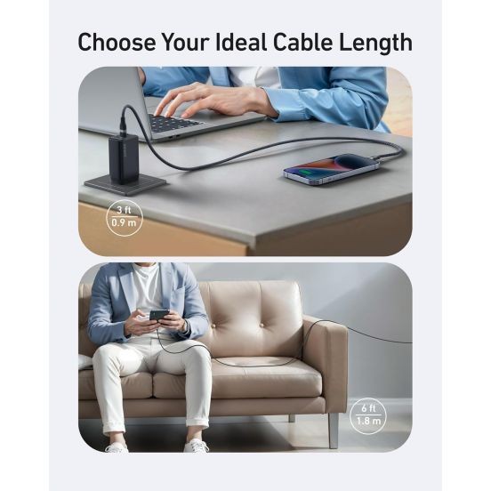 Anker Type-C To Lightning Cable 60W Fast Charging 0.9m, A82B2011 - Black