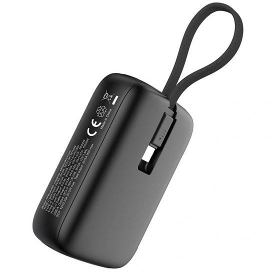Powerology 10000 mAh Power Bank With USB-C Cable, 20W, PPBCHA66-BK - Black