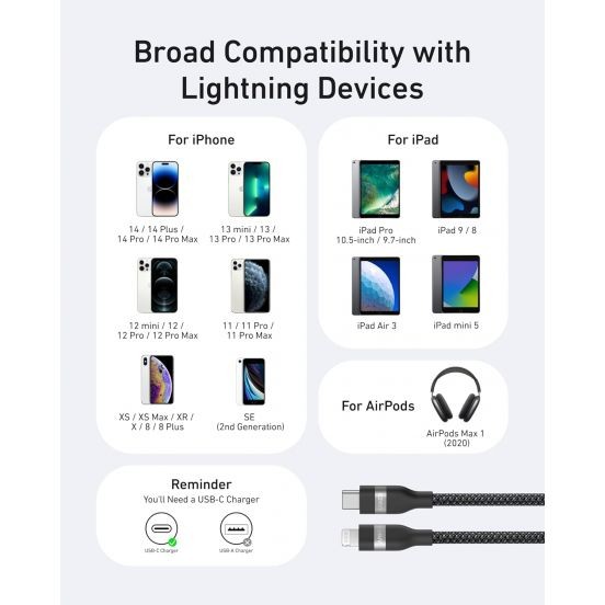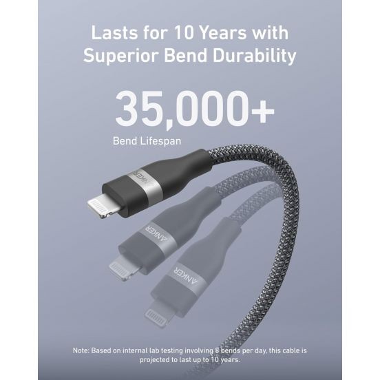 Anker Type-C To Lightning Cable 60W Fast Charging 0.9m, A82B2011 - Black